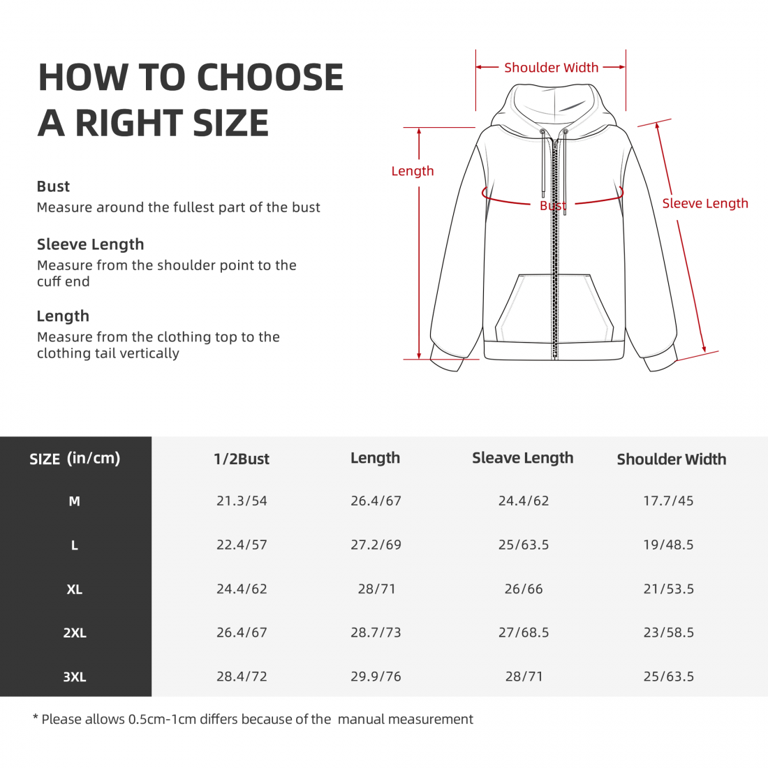 【特别说明】此尺码数据在衣服平铺下测量所得,因测量方法不同,误差在2-4cm内的属于正常现象